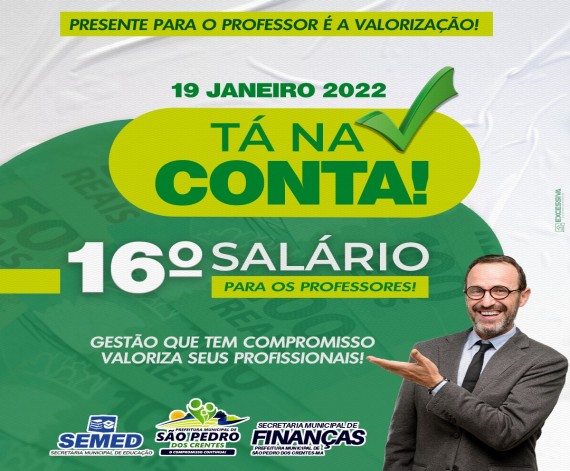 Décimo Sexto Salários dos Professores Municipais de São Pedro dos Crentes - MA